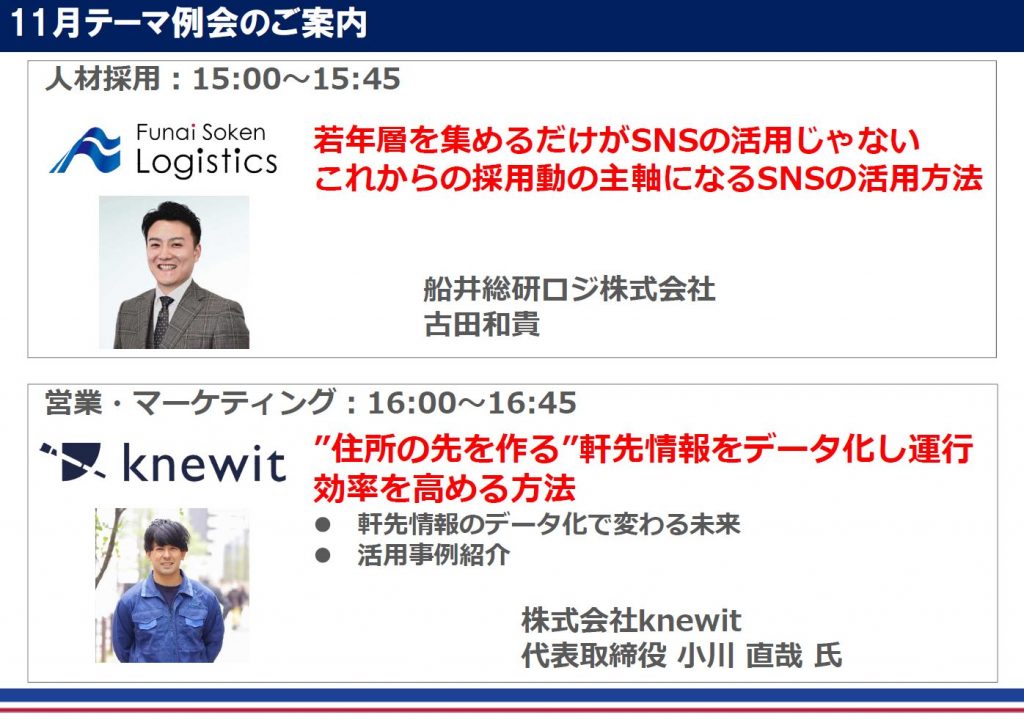 『 ロジスティクスプロバイダー経営研究会 11月度テーマ別例会 』の詳細をお知らせいたします!