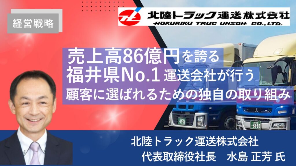 北陸トラック運送さんは、長距離輸送・店舗配送・倉庫保管・土砂運搬など幅広い物流サービスを提供しています。多くのお客様から選ばれるために行っている、良い会社創りについてお話しいただきました。